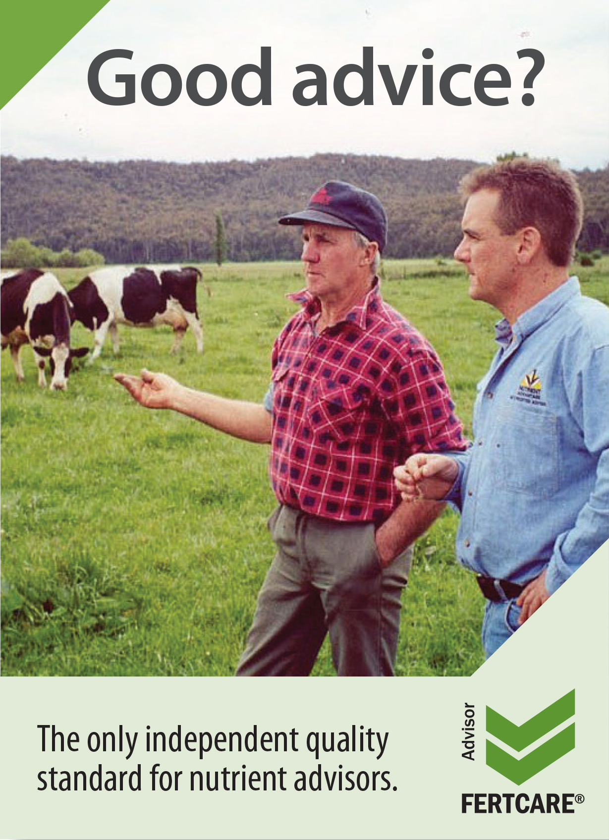 The quality of soil and nutrient advice farmers receive can vary widely. Fertcare® is about promoting productivity while protecting the environment. For independently audited advice based on good practices and accepted science to optimise productivity, look for a Fertcare Accredited Advisor.